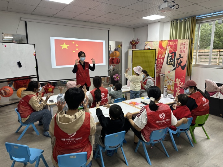 2025年11月12日下午,学前教育专业的黄思雅、叶偲羽、强虹烨、杨佳莹四位同学前往福建省助困公益协会,开展了以《国旗国旗真美丽》为主题的病房教室志愿活动,陪伴白血病儿童度过了一段愉快而温暖的时光。