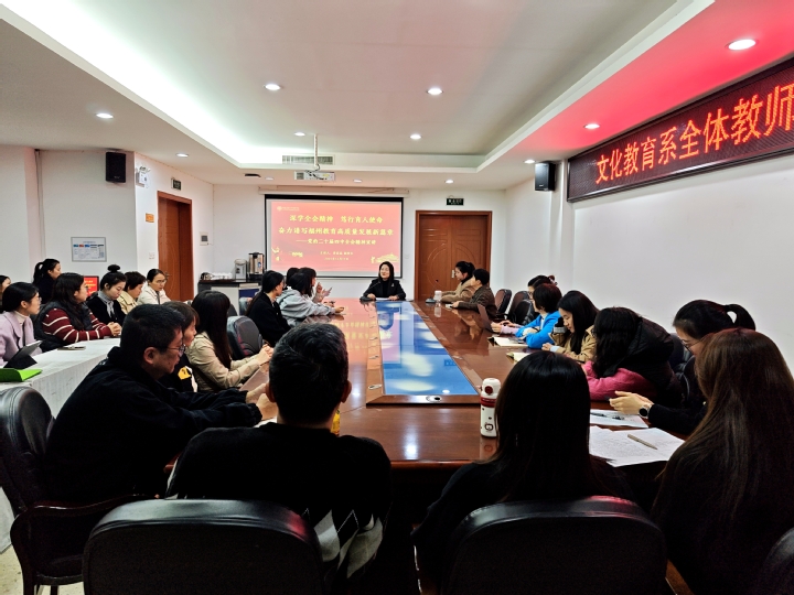 宣讲会上,黄磊晶副校长紧紧围绕党的二十届四中全会的重大意义、核心要义和精神实质,结合当前国家经济社会发展大局与教育改革发展方向,进行了系统阐释和深入解读。她强调,这次全会是在我国迈上全面建设社会主义现代化国家新征程、向第二个百年奋斗目标进军的关键时刻召开的一次十分重要的大会,对于推动党和国家事业发展具有重大而深远的意义。教育工作者必须深刻领会全会关于建设教育强国、科技强国、人才强国的战略要求,牢牢把握高质量发展的首要任务,将全会精神内化于心、外化于行。黄磊晶副校长紧密结合文化教育系各专业特点及专业发展实际,对学习贯彻工作提出了明确要求。