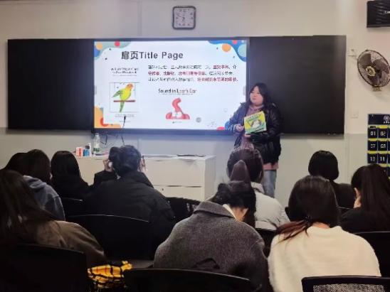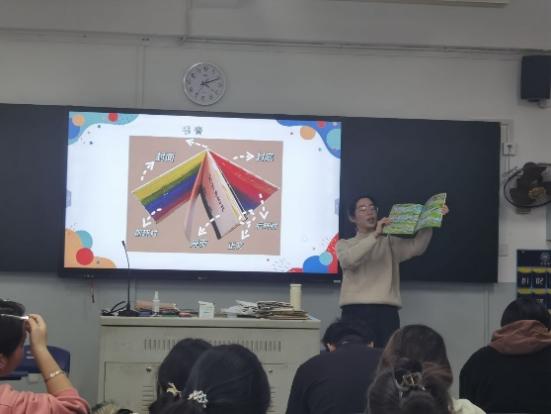 在首场教学指导中,行业导师以“扉页设计”为切入点,通过解析《SoundinLear'sEar》等经典案例,引导学生理解绘本的叙事逻辑与商业价值;行业导师现场演示“旋转木马书”“弹起式立体书”的制作工艺,强调“互动性”是当代儿童绘本的核心竞争力。应用英语教师则发挥专业优势,将词汇教学、语法训练融入创作全流程,确保作品既具艺术性又符合语言规范。这种“理论+技术+市场”的三维指导体系,让学生的创作从“完成作业”升华为“解决真实需求”。
