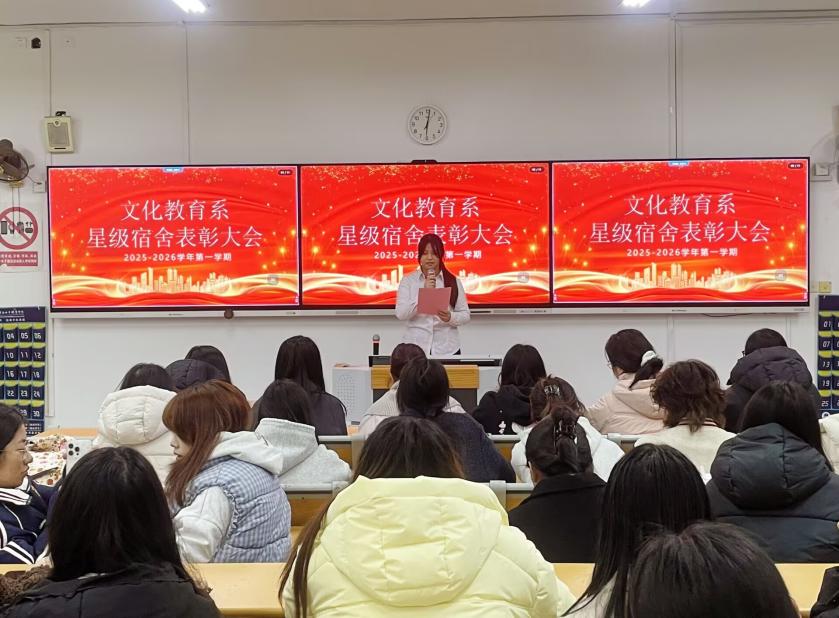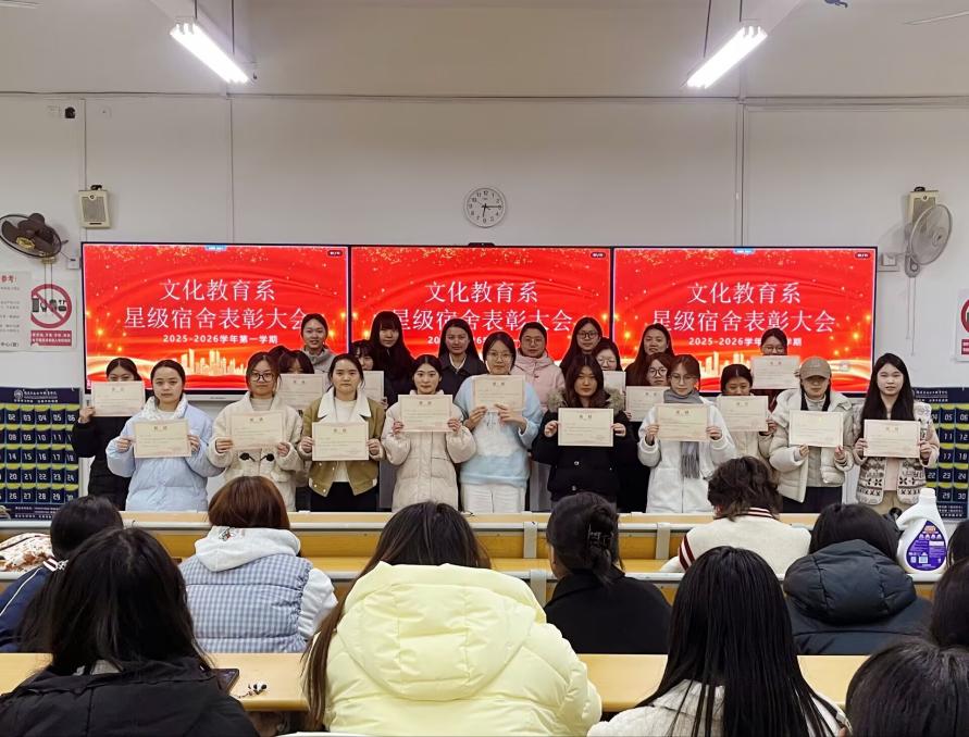 为营造良好的宿舍文化氛围,鼓励同学们共同建设更优美的宿舍环境,2025年1月5日,文化教育系在福万楼4-203教室举行2025-2026学年第一学期十一月、十二月星级宿舍表彰大会。文化教育系全体辅导员及各宿舍学生代表参加了本次活动。