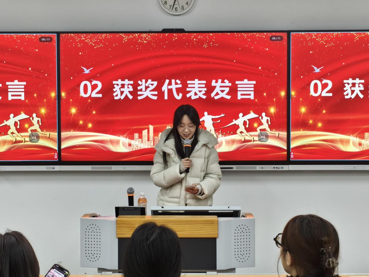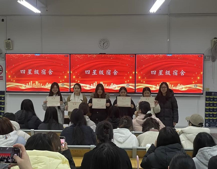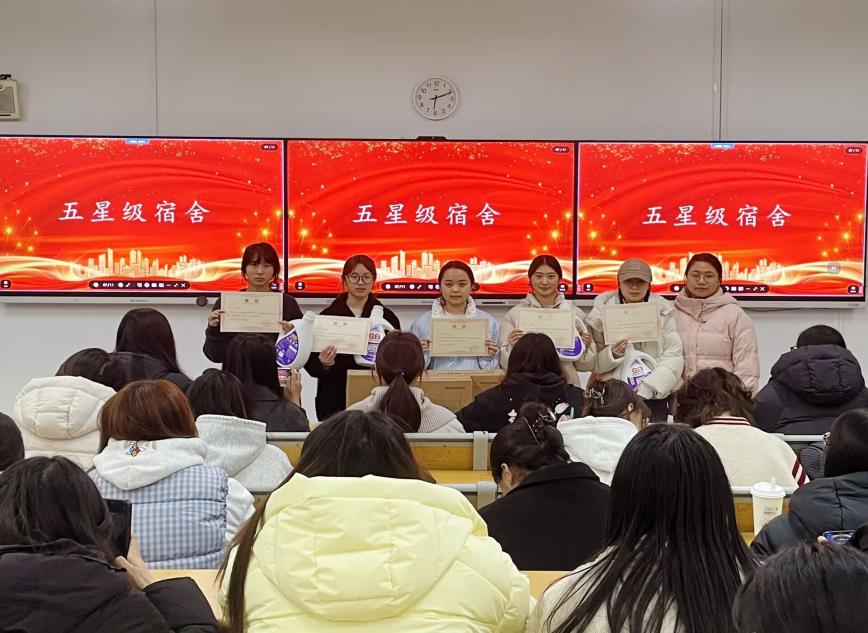 随后,辅导员为获奖宿舍代表颁发了荣誉证书和奖品。五星级宿舍代表叶偲羽同学上台分享经验。她表示,宿舍是每位同学共同的家园,维护好宿舍环境是每个人的责任,今后将继续以身作则,积极推动宿舍环境建设,并带动周边宿舍共同进步。