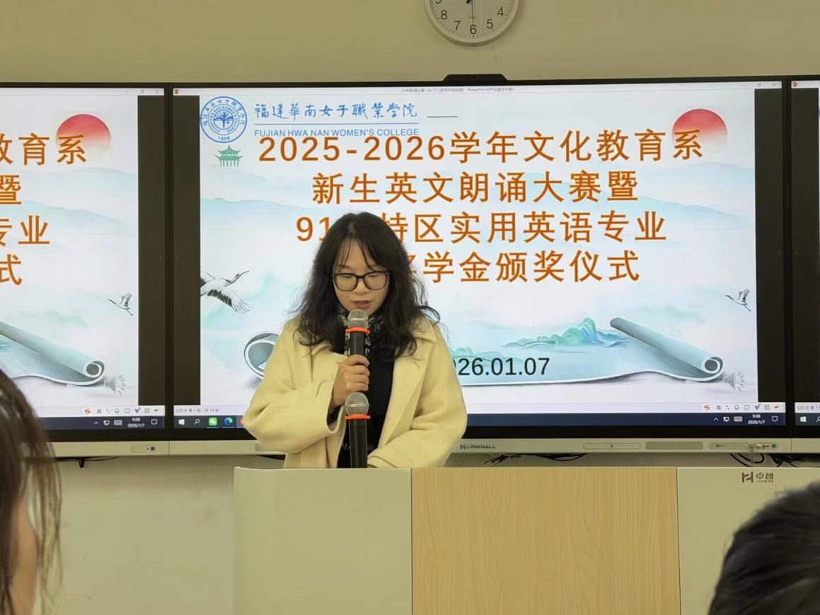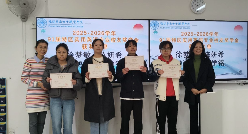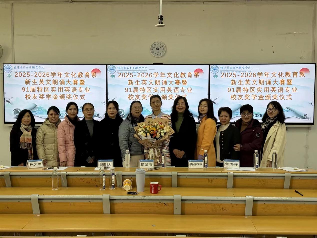 2026年1月7日上午,文化教育系应用英语专业于福万楼4-103举办1991届特区实用英语专业校友奖学金颁奖仪式。此项奖学金由1991届校友设立,旨在表彰和奖励入学成绩优异的新生,该奖项不仅是一份鼓励,更承载着校友对母校的深厚情谊和对学弟学妹的殷切期望。