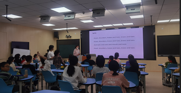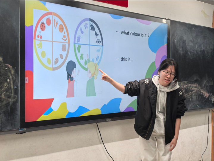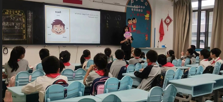 对华南女院学生而言,这场志愿服务是“教学相长”的成长课。课堂上,她们需快速切换“教师”角色:面对小学生注意力分散的特点,设计“卡通兔子”、“数字接龙”等游戏维持秩序;针对学生差异,用“指屏幕讲解”、“个别指导”等方式调整节奏,课堂组织管理能力在实践中悄然提升。此外,团队协作完成教案设计、教具准备的过程,更让她们学会倾听与配合。一名志愿者感慨:“原来‘教’不仅是传授知识,更是观察需求、共情引导的艺术。”这份体悟,让她们对未来从事儿童英语教育、涉外服务等职业方向有了更清晰的认知。