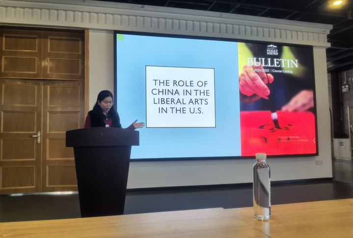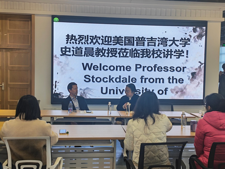 2026年3月11日,福建华南女子职业学院迎来美国普吉湾大学史道晨教授(Professor Stockdale),他以“中国在美国文科课程设置中的作用”(The role of China in the liberal arts curriculum in the U.S.)为题开展学术讲座。学校副校长吴岚葭出席活动并致欢迎辞,文化教育系主任赖黎群主持讲座,应用英语与商务英语专业师生约五十余人参加。