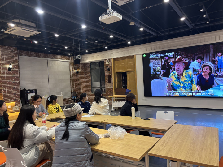 活动现场,活动主持人林小敏首先通过英文新闻报道,生动展示了福州鼓岭作为中美民间友好交往缩影的百年故事。从外教Gordon Trimble家族的“鼓岭情缘”、“华南情谊”到近年来两地青年的人文互动,中美双方同学均深刻感受到跨越太平洋的友谊传承。在分组讨论环节,大家结合自身专业,就中美文化异同、历史故事、社交礼仪等话题展开思辨交流,现场气氛热烈。活动尾声,全体师生共同用英文演唱经典歌曲《友谊地久天长》,悠扬的旋律将活动推向高潮。
