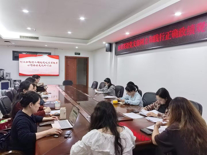集中学习后,会议进入学习研讨环节。各位党员教师结合前期个人自学成果,立足英语教育教学、专业发展、学生管理等本职工作,逐一分享学习树立和践行正确政绩观的心得体会。大家纷纷表示,作为应用英语专业的党员教师,要坚决摒弃短视化、功利化的错误倾向,将正确政绩观贯穿于课堂教学、人才培养、学术研究全过程,以学生长远发展、综合素养提升为核心目标,扎实做好知识传授、能力培养与价值引领工作。研讨中,党员们敞开心扉、畅所欲言,既谈思想认识、也谈工作思路,既交流经验、也检视不足,在思想碰撞中凝聚共识,在互学互互鉴中共同提升,切实让学习教育入脑入心、见行见效。