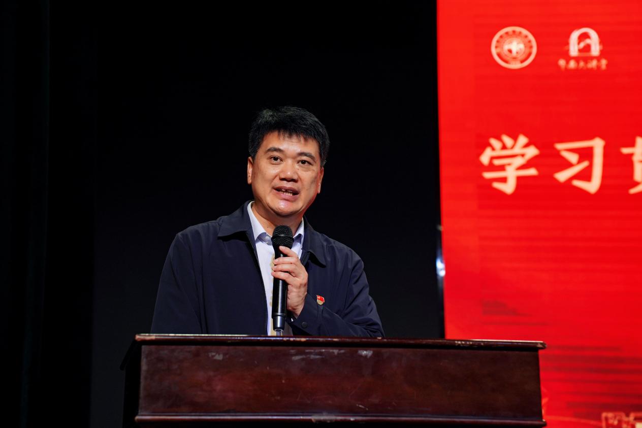 杨建义教授首先带领大家回顾了党的二十届四中全会精神的主要内容与重要意义,随后围绕“从中长期规划中理解制度优势”“深刻理解中国特色的治理方式”“正确认识‘十四五’期间的成绩”“准确把握‘十五五’时期的历史方位”“全面把握‘十五五’规划建议的主要内容”“深入理解规划建议的新观点新论断”六大维度,系统解读了党的二十届四中全会精神。整场报告旁征博引、深入浅出,既立足国家战略高度解析全会精神的理论内涵,又结合教育领域实际阐释实践要求,为全体教职工准确理解党的二十届四中全会精神提供了清晰指引。