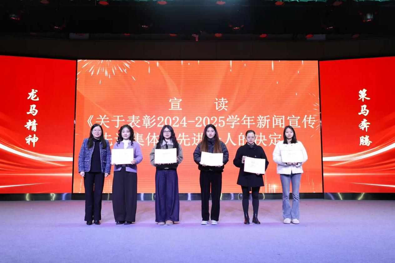 会上,副校长黄磊晶宣读了《关于表彰2024-2025学年新闻宣传先进集体、先进个人的决定》。会议表彰艺术设计系、文化教育系、旅游服务系、学生工作部(处)、健康服务系、国际商务管理系等6个新闻宣传先进单位,学生工作处新媒体中心、团委青年传媒中心、华南数据派系等3个新媒体建设先进单位,汤秋月、刘晓燕、吴文佳、吴婧、强榕等5名新闻宣传工作先进个人。党委副书记张秋蘋、党委书记张林、校长任建红分别为获奖集体和个人颁发荣誉证书。