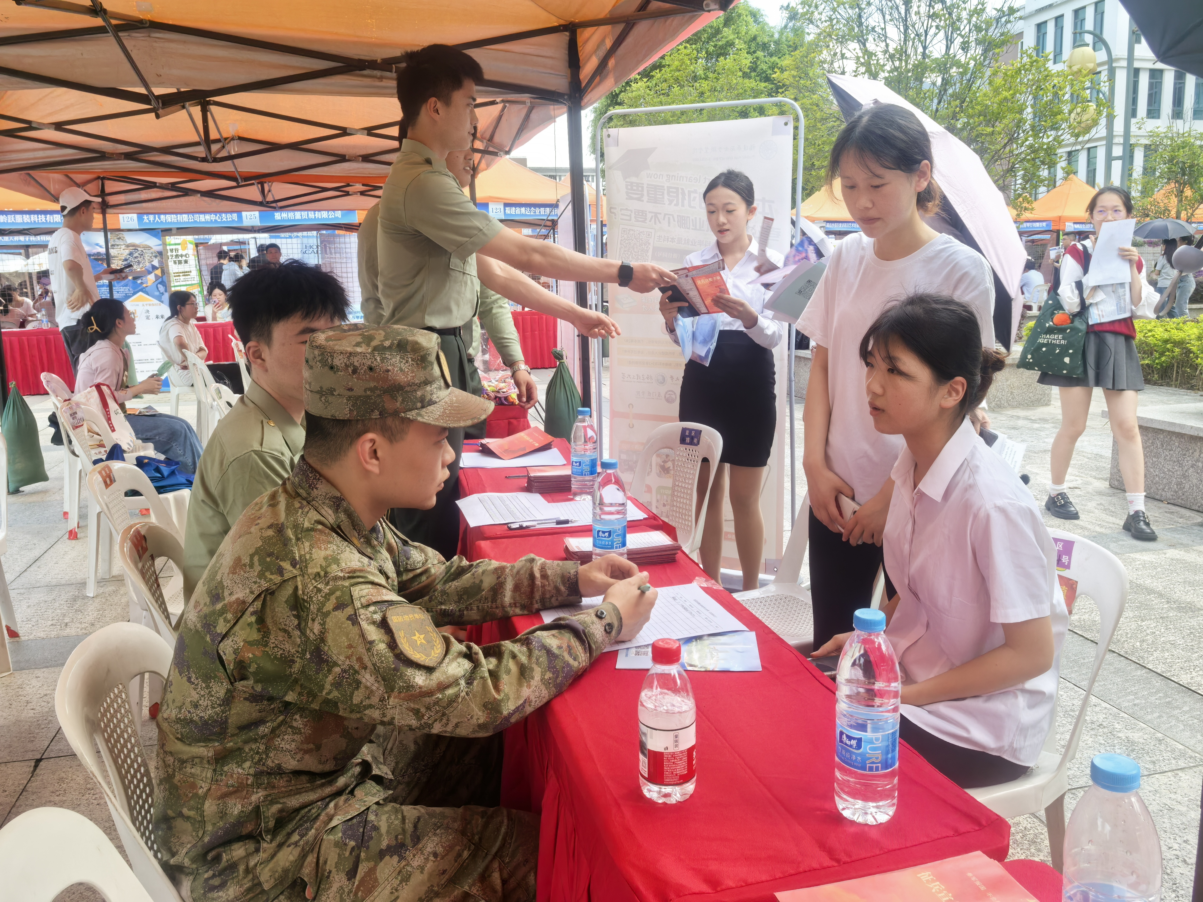 青春当有热血担当,理想应与家国同频。为积极响应国家征兵号召,激发毕业生参军热情,5月21日下午,校征兵工作站联合台江区人民武装部创新举措,借助今年毕业生招聘会平台,在校园招聘广场摆摊开展征兵宣传,将“军营机遇”与“职业选择”同台展现,以别开生面的形式为毕业生们送上“青春与责任的双重选择”。
