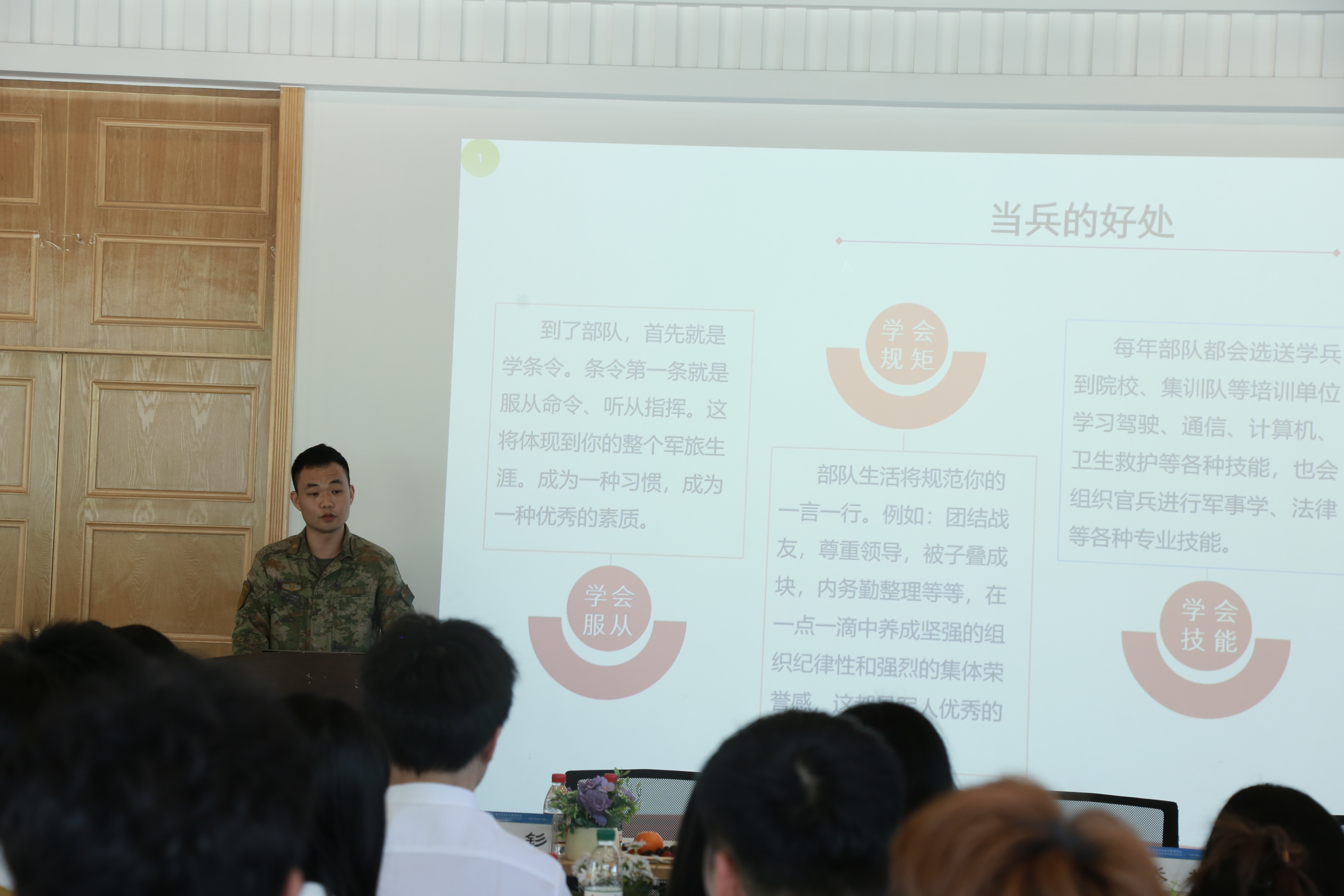 会上,台江区人民武装部张永昊干事围绕大学生入伍意义、要求、流程及退役士兵优惠政策等进行了详细介绍。