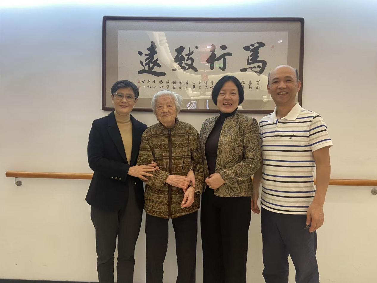 近日,学校1988届实用英语专业毕业生李小武校友怀着对母校的深切眷恋与对恩师的崇高敬意,重返母校,开展返校探访活动。期间,李小武校友专程探望了107岁高龄的马秀发老师,参观了校园风貌,并与学校理事长余荣敏、校长任建红、外教程高登教授及其夫人亲切交流,共叙师生情、校友情。