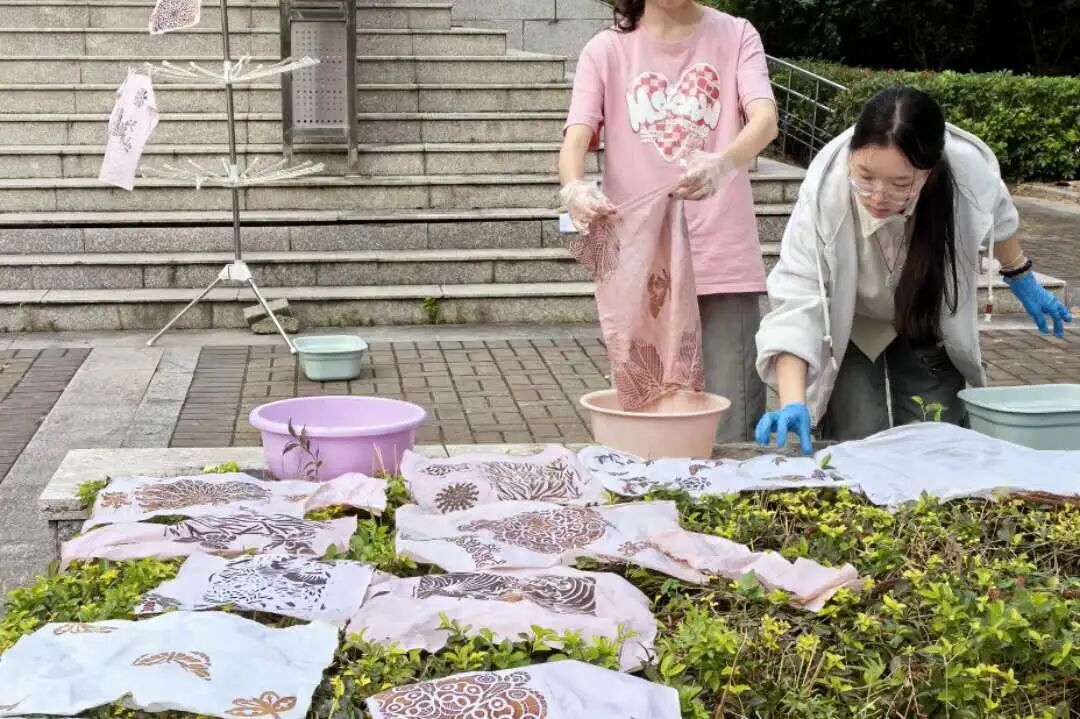 在教育创新与非遗传承的时代浪潮下,服装与服饰设计专业将非遗文化融入教学实践,开展了一场又一场别具一格的校内外实践活动。学生们将课堂上学到的手工印染技艺,通过多种方式延伸到了社会,让更多的人了解和喜爱上了这门传统技艺,弘扬非遗文化。