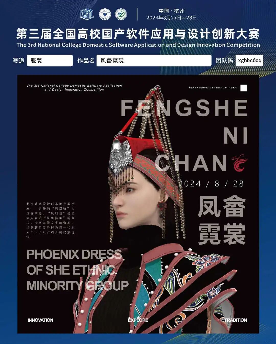 在全国性服装设计比赛中,我们的学生同样表现出色。收获了 1项一等奖和 1项二等奖。获奖作品不仅在设计上独具匠心,还充分融入了中国传统文化元素,体现了对本土文化的传承与创新,为推动中国服装与服饰设计行业的发展贡献了力量。