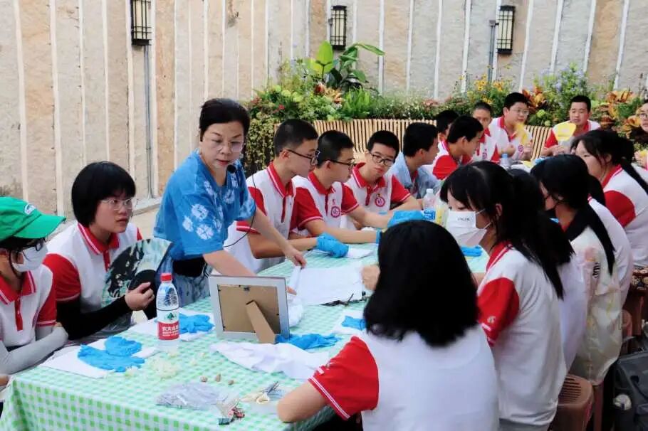 同年 6月,同样在梁厝街区,专业团队为中学生量身定制了一场扎染艺术体验课程。作为非物质文化遗产,扎染以其独特的魅力吸引着学生们,他们在实践中领略传统技艺的魅力,感受传统文化的深厚底蕴。