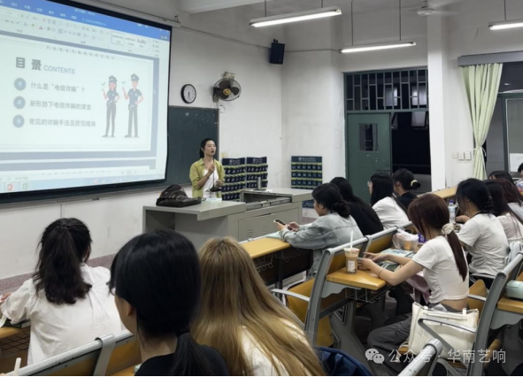 为切实增强学生安全意识,构建平安和谐校园。近日,艺术设计系各专业班级开展“校园安全月”系列主题班会,内容覆盖防诈骗安全、消防安全、交通安全、食品安全等重点领域,班会以辅导员讲解,同学积极互动参与为主要形式。