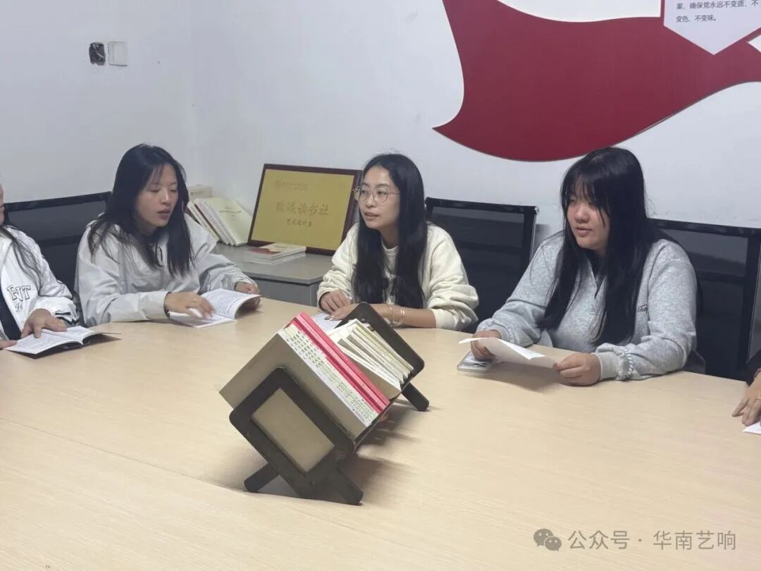在我系产学研基地“一站式学生公寓”,读书社成员围绕“传统文化活化”“设计与科技融合”“文化传播创新”等专题展开激烈研讨。大家结合专业特色,提出可实行的实践方法,深入探讨艺术设计如何将党的二十届四中全会精神融入专业创作。