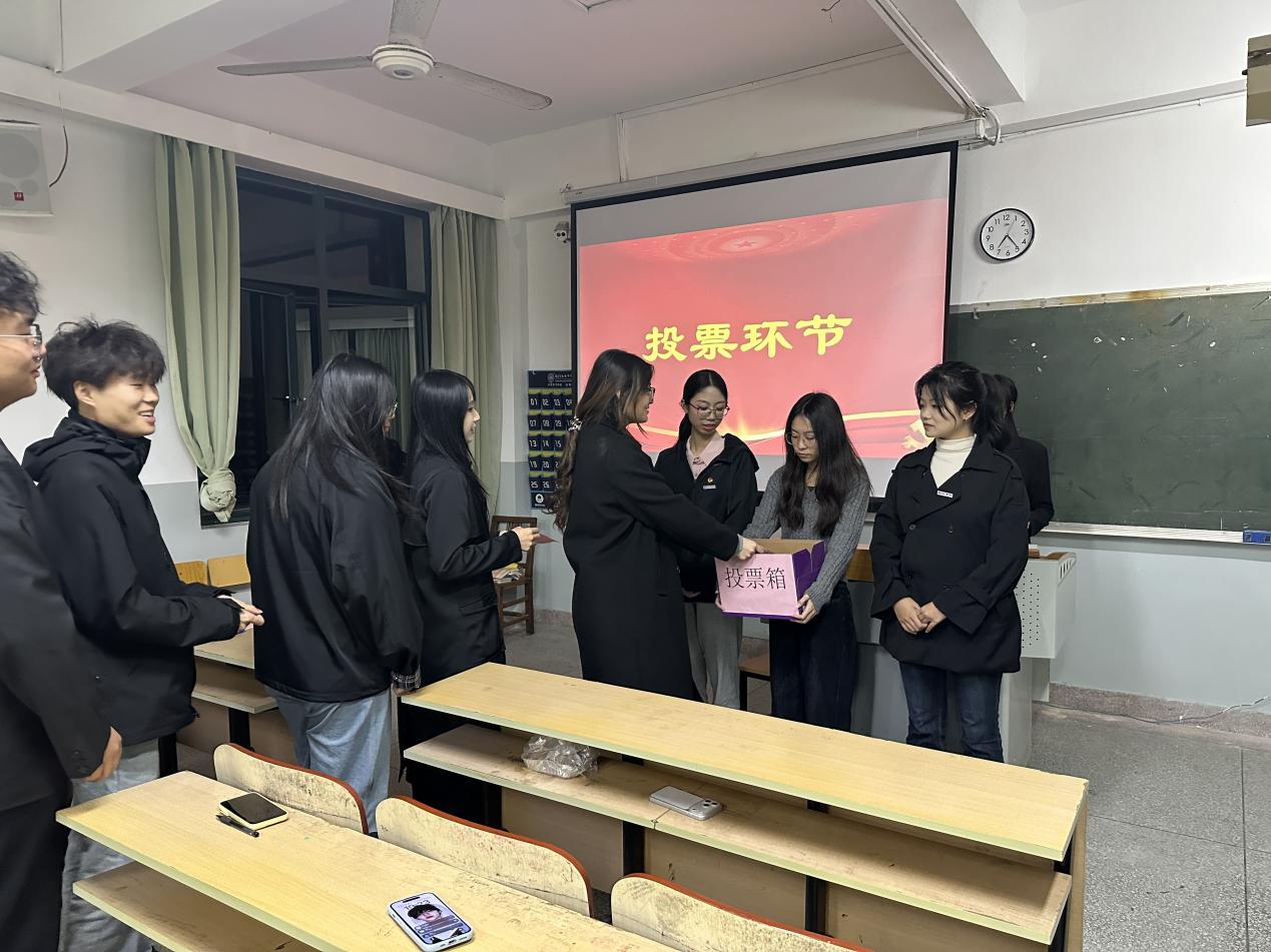 进入投票环节,与会团员依照规定认真行使民主权利,郑重投下自己的一票。监票人依规对票箱进行严格检查,工作人员有条不紊地完成选票发放工作。在规范严谨的监票、计票流程保障下,本次投票工作高效完成。最终,大会选举产生张矣老师为新一届团总支书记,陈骁逸老师当选新一届团总支组织委员。