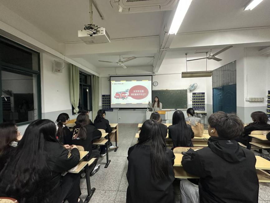 辅导员吴文佳组织召开了消防安全主题班会。她通过播放火灾警示片、分析典型校园火灾案例,向学生普及了火灾隐患识别、初期火灾扑救、疏散逃生等基本消防知识,并提醒同学们严格遵守宿舍用电管理规定,严禁使用违规电器,切实增强消防安全防范能力。