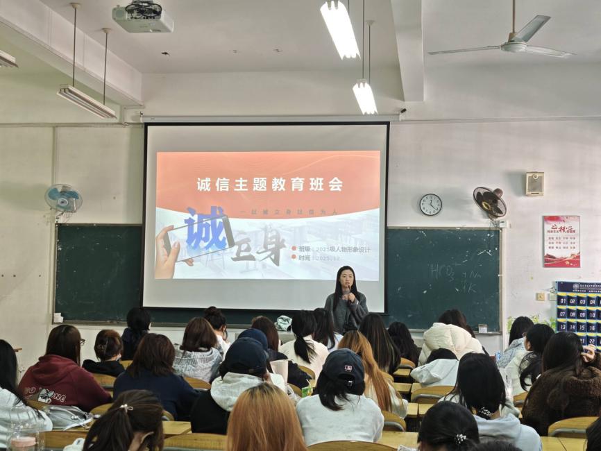 近期,艺术设计系各专业围绕“树诚信风尚,守安全底线,做新时代有为青年”主题,陆续开展了一系列内容丰富、形式多样的主题班会。辅导员们结合学期末重点工作和校园安全实际,聚焦诚信考试、禁烟管理、消防安全、交通安全等关键领域,通过案例警示、政策解读和互动交流,引导学生增强自律意识、筑牢安全防线、践行诚信准则,切实将个人成长与责任担当融入日常行为之中,展现出艺术学子积极向上、奋发进取的精神风貌。
