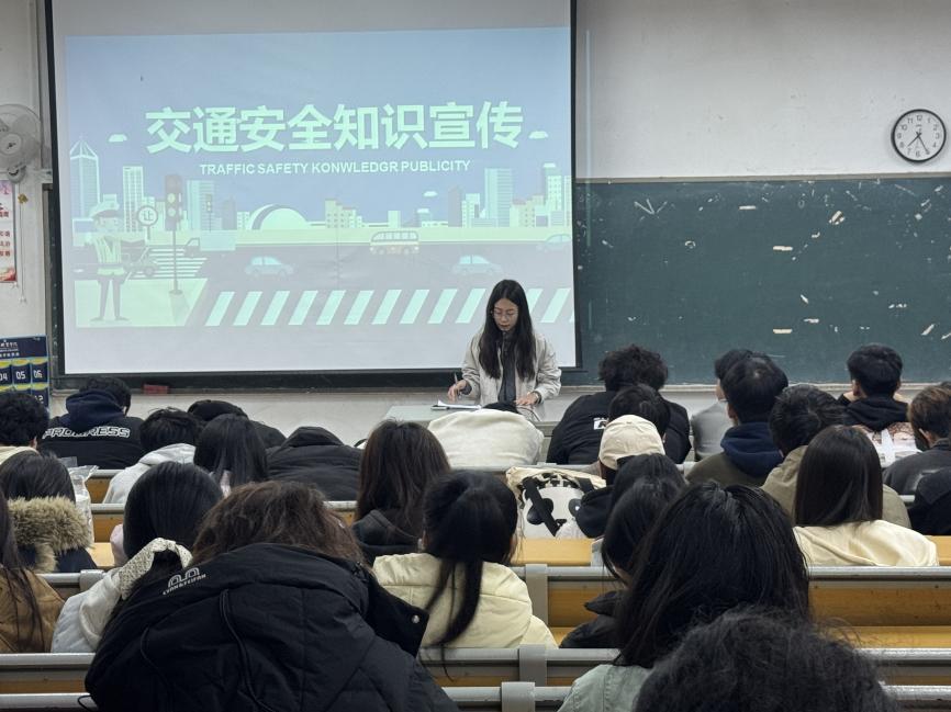 辅导员黄艳琳围绕“文明出行,安全相伴”主题开展交通安全教育。她结合真实交通事故案例,重点讲解了遵守交通规则的重要性,特别是骑乘电动自行车佩戴安全头盔、不闯红灯、不逆行、不违规载人等注意事项,提醒同学们树牢交通安全意识,防范交通风险。