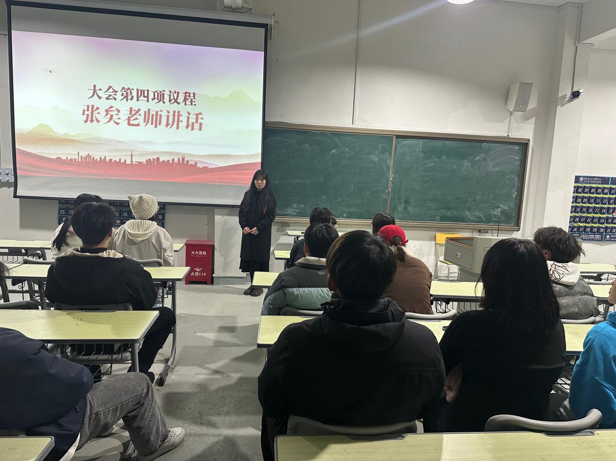 述职结束后,辅导员张矣老师作总结讲话。她首先对团委学生会在过去一学期中取得的各项优异成绩表示热烈祝贺,对全体学生工作人员的辛勤付出和无私奉献致以诚挚的感谢。张老师结合各部门的述职汇报内容以及日常表现进行了综合评价,全面复盘了2025年度团学工作的成效。她精准地指出当前工作中存在的问题,鼓励同学们要聚焦服务职能,勇于突破传统思维,积极创新实践。同时,牢固树立为同学们服务的工作理念,不断提升自身的综合素质和业务能力,锤炼过硬素养,为新学期团学工作的提质增效凝聚骨干力量。